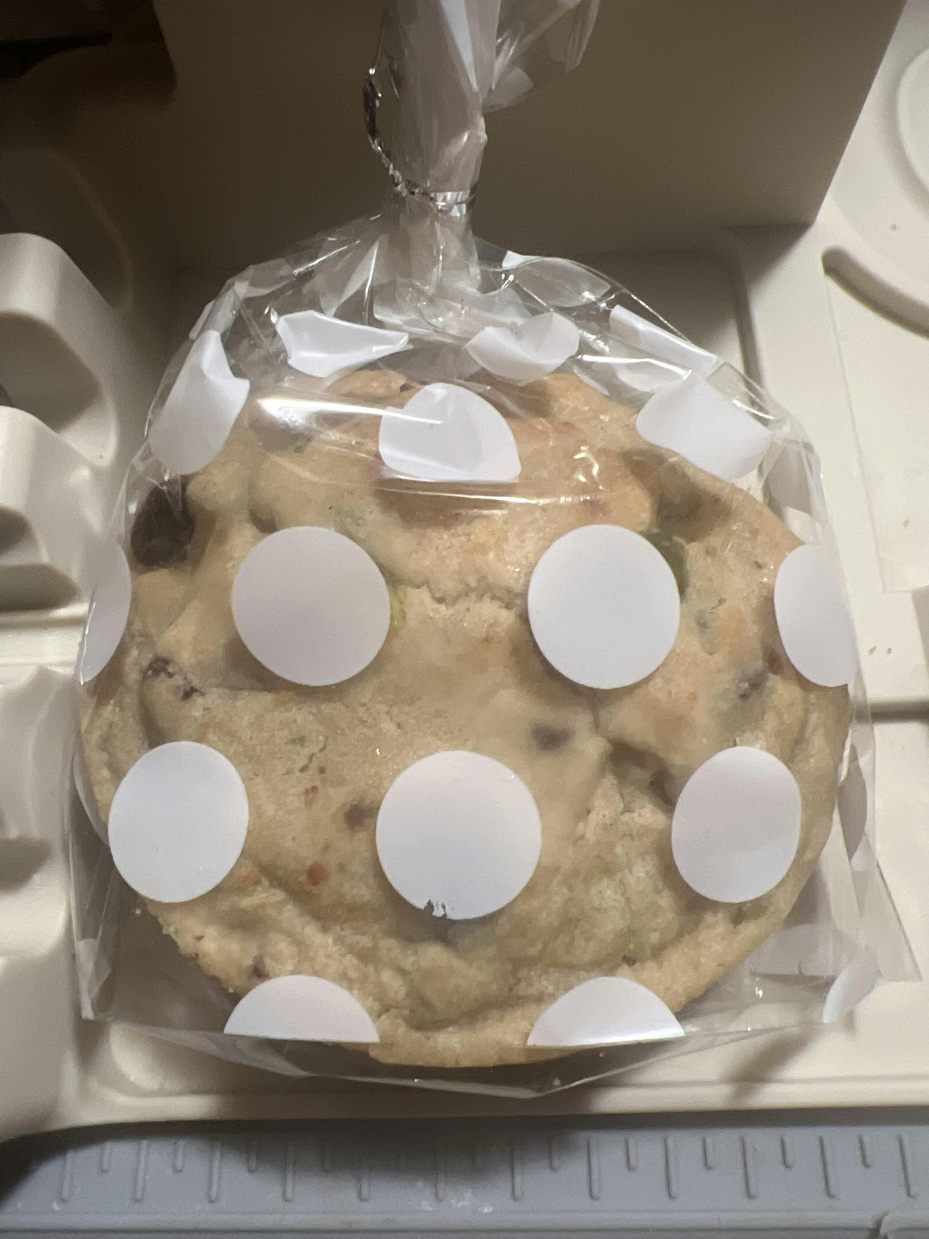 Each cookie is about 4 inches wide and around 4 oz — a thick, hearty, and indulgent portion.