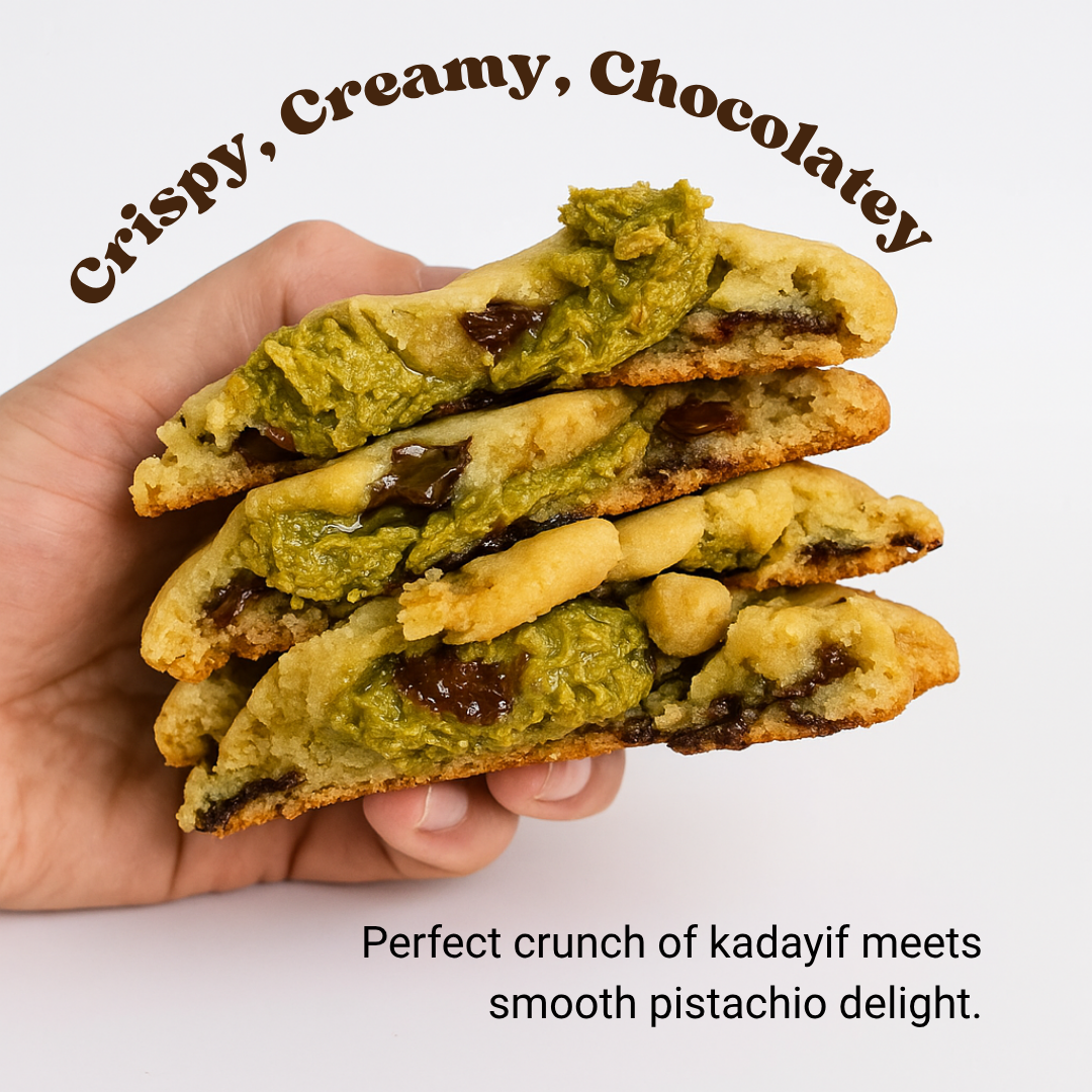 Experience the luxury of our Dubai Chocolate Chip Cookies, inspired by the bold dessert culture of Dubai. Each oversized cookie is 3–4 inches, 1 inch thick, and weighs 4 oz, packed with premium chocolate chips for the perfect melt-in-your-mouth indulgence.