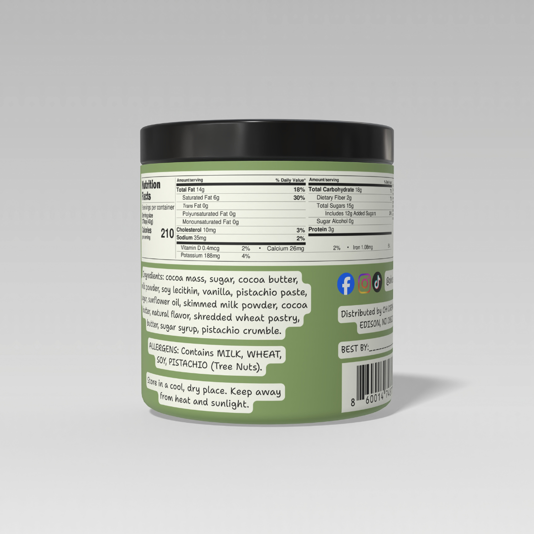 Dubai in a Jar is a luxurious blend of creamy pistachio, crunchy kadayif, and rich chocolate — inspired by Dubai’s famous “pistachio & chocolate” desserts. It’s a spreadable indulgence perfect for toast, desserts, pancakes, and straight from the spoon.
