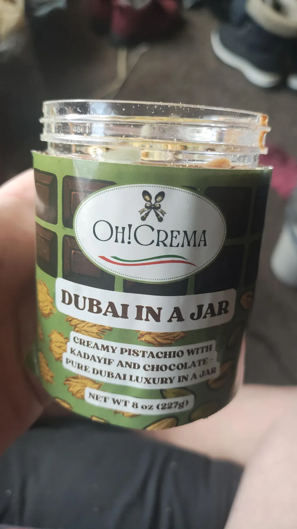 Oh! Crema’s Dubai in a Jar blends creamy pistachio, crunchy golden kadayıf, and rich Belgian chocolate into a silky, decadent spread inspired by Dubai’s world-famous desserts.