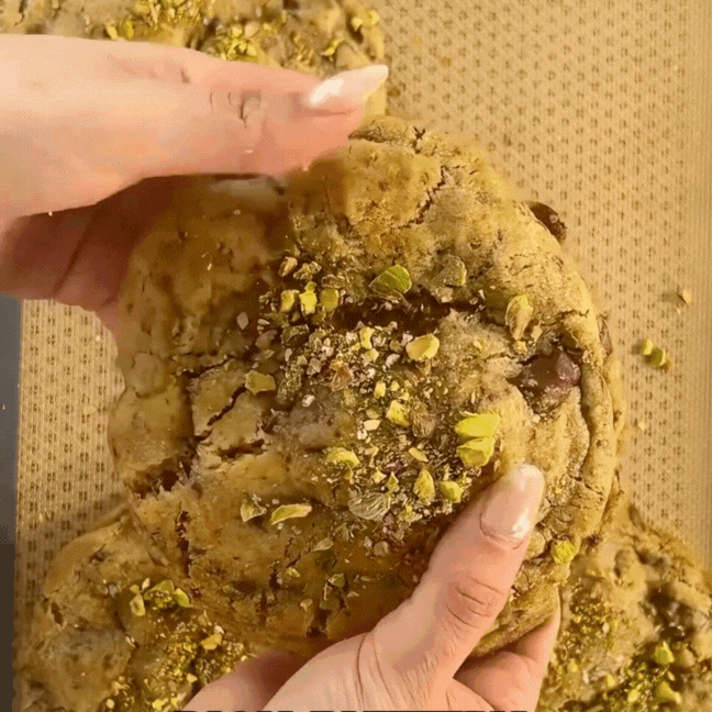 Indulgence meets craftsmanship — baked fresh with authentic Oh! Crema pistachio cream, premium chocolate chips, and artisanal quality in every bite. A gourmet cookie experience unlike any other.
